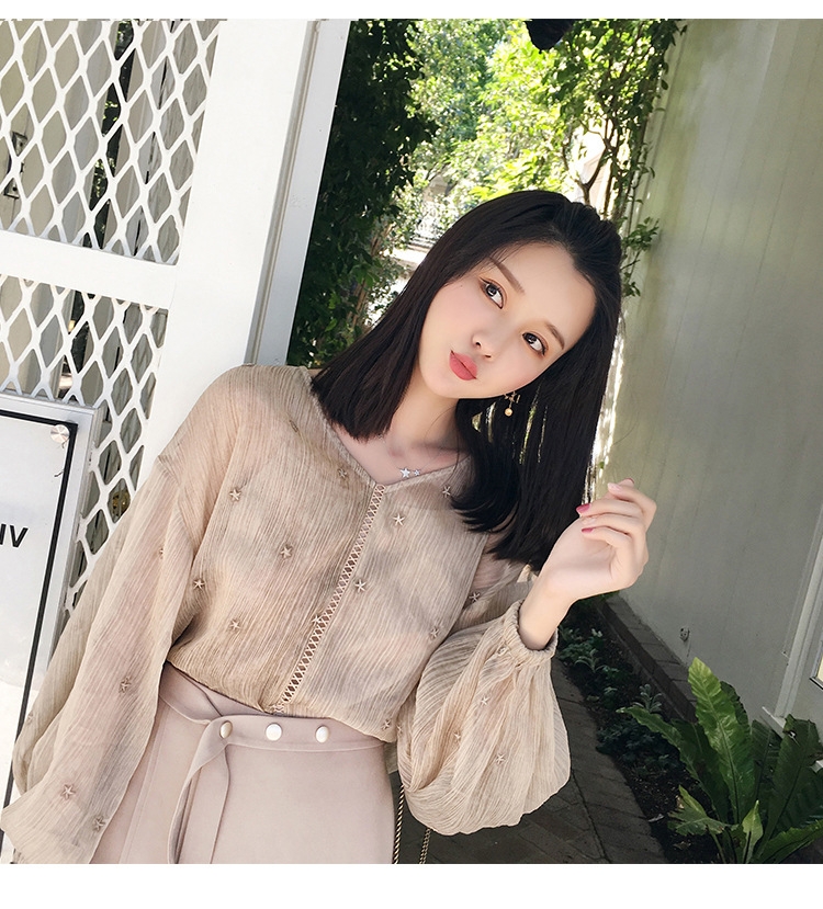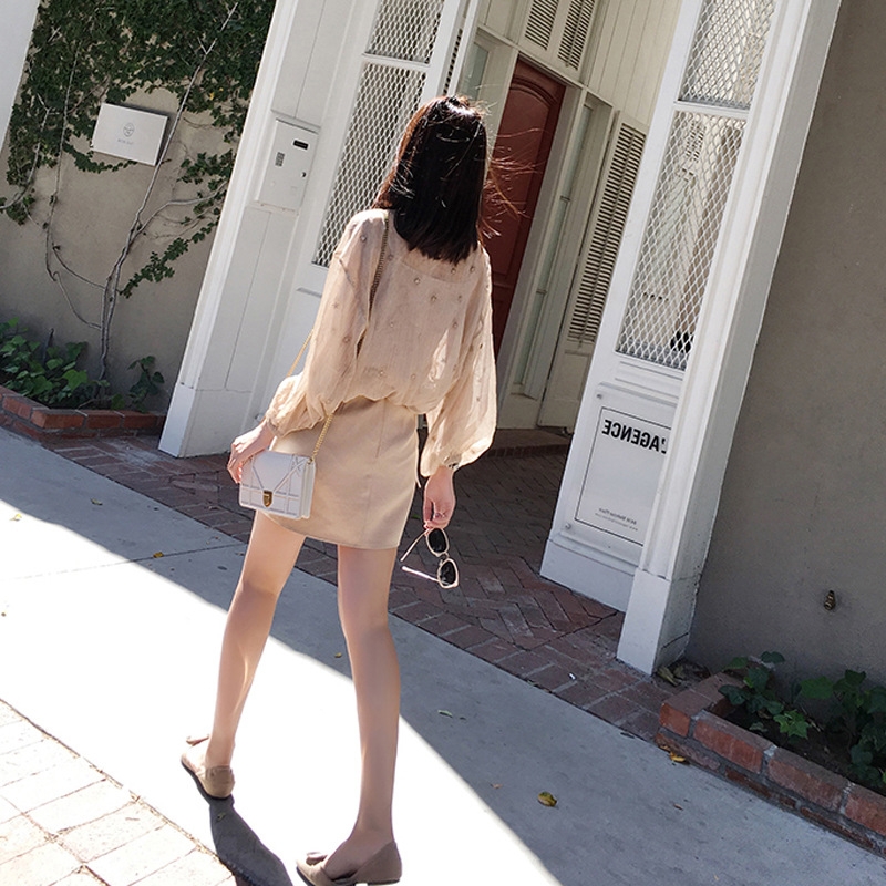 Europe station 2021 new casual suit women lantern sleeve chiffon shirt top skirt temperament short skirt two-piece set