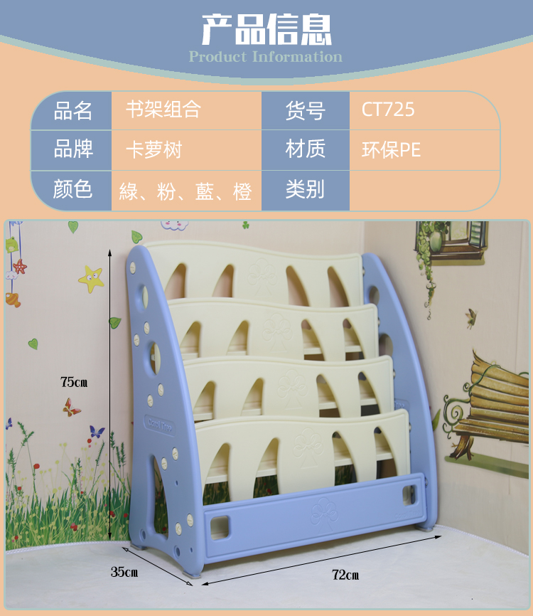 Children's plastic bookshelf Household baby toy storage cabinet Kindergarten multi-layer picture book shelf cartoon finishing