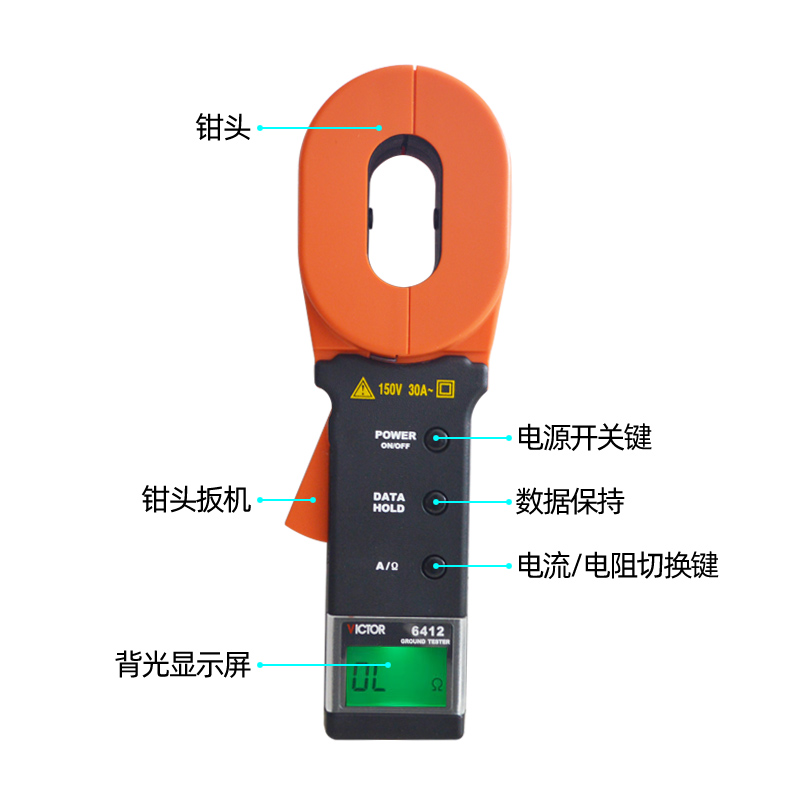 Victory pincer-shaped ground resistance tester VC6412 Lightning Wire Ground Resistance Tester Pliers Shape Resistance Gauge