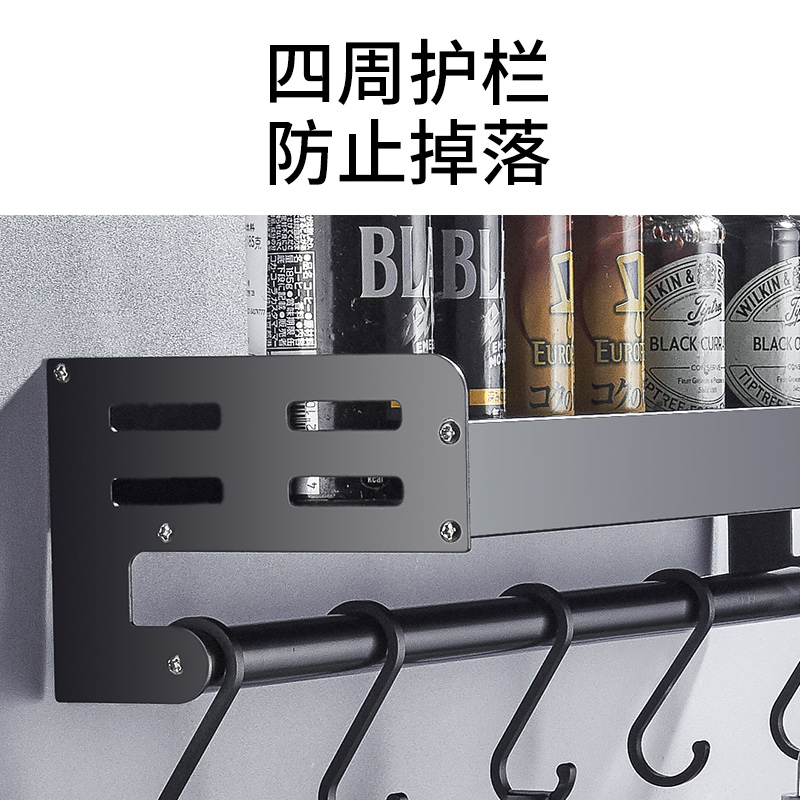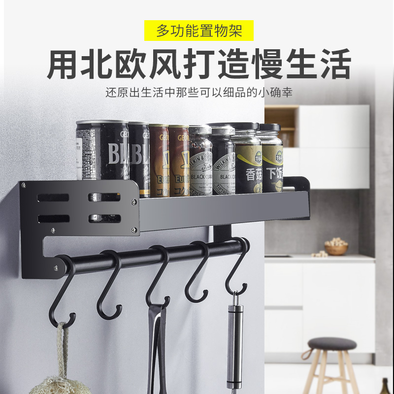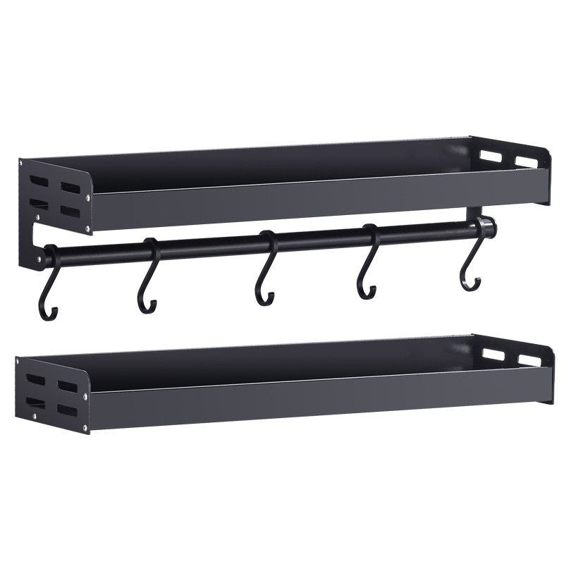 Black kitchen seasoning rack Double wall-mounted wall shelf Multi-function storage shelf Oil, salt, sauce and vinegar shelf