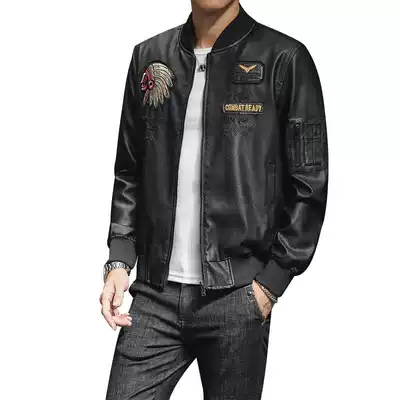 Leather Leather Leather Men Slim Korean Handsome Tide Tide Baseball Collar Men's Sheep Leather Jacket Short Machine Clothing Leather Jacket