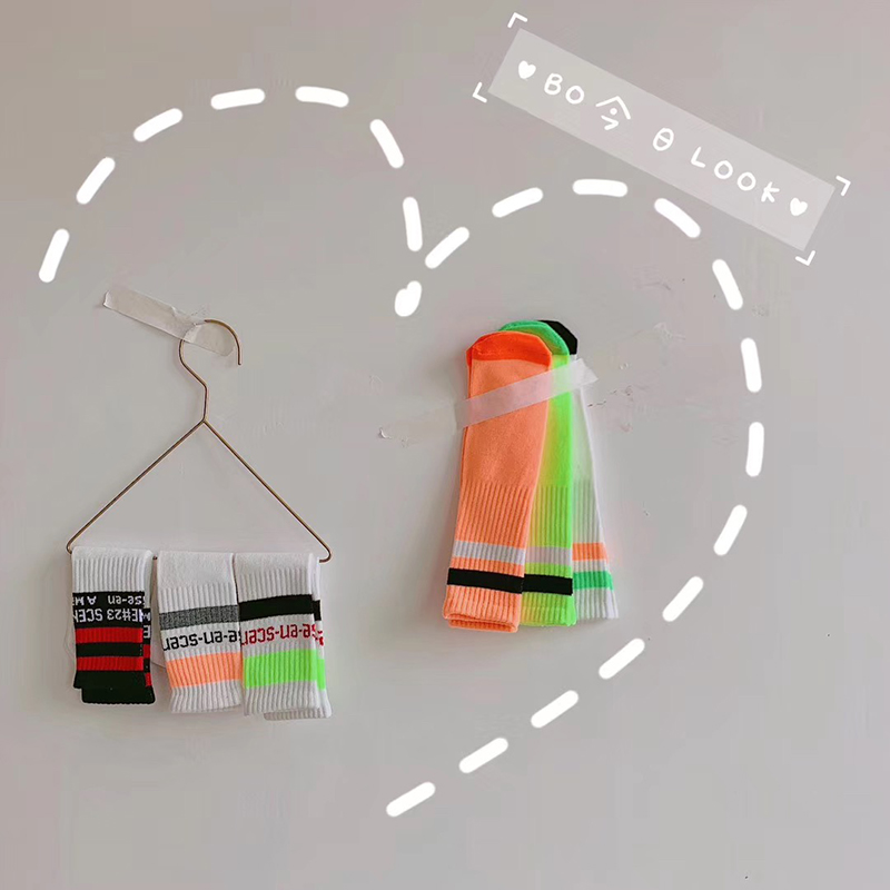 Hong Kong Korean children's clothing girls' autumn all-match Western-style socks women's treasure bubble socks letters hit color socks