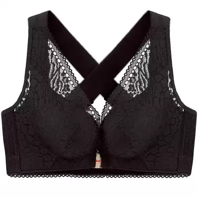 Large size underwear without steel rim thin underwear female front buckle cross beautiful back breathable deep V gathered upper bra fat mm