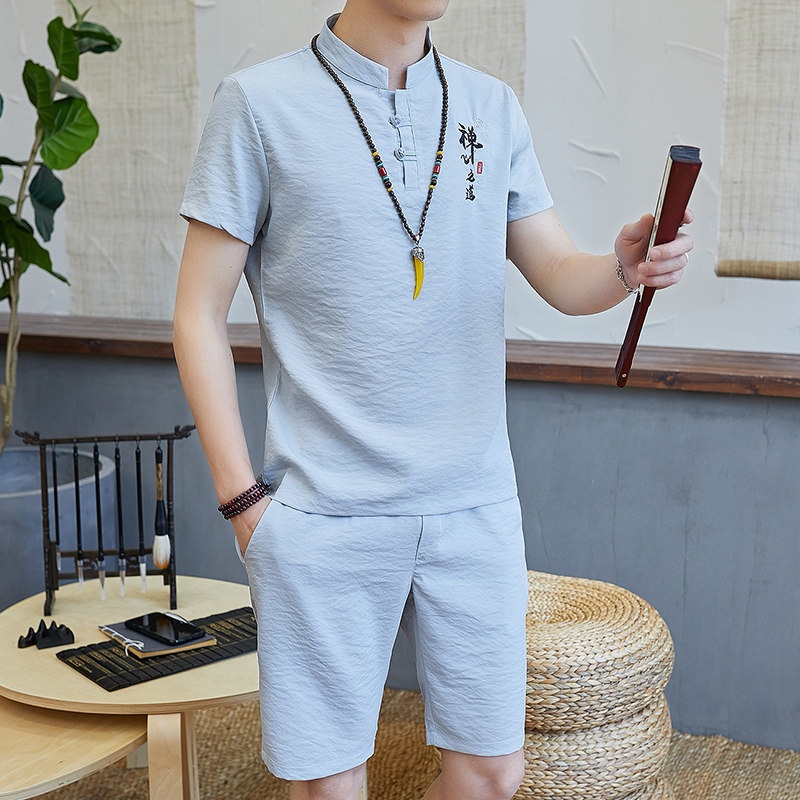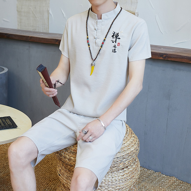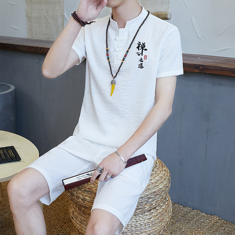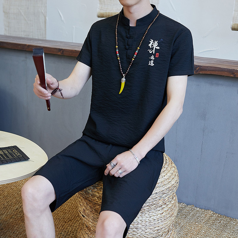 Tang suit male popular logo men's suit collocation handsome personality mature retro breathable Chinese wind ice silk summer suit