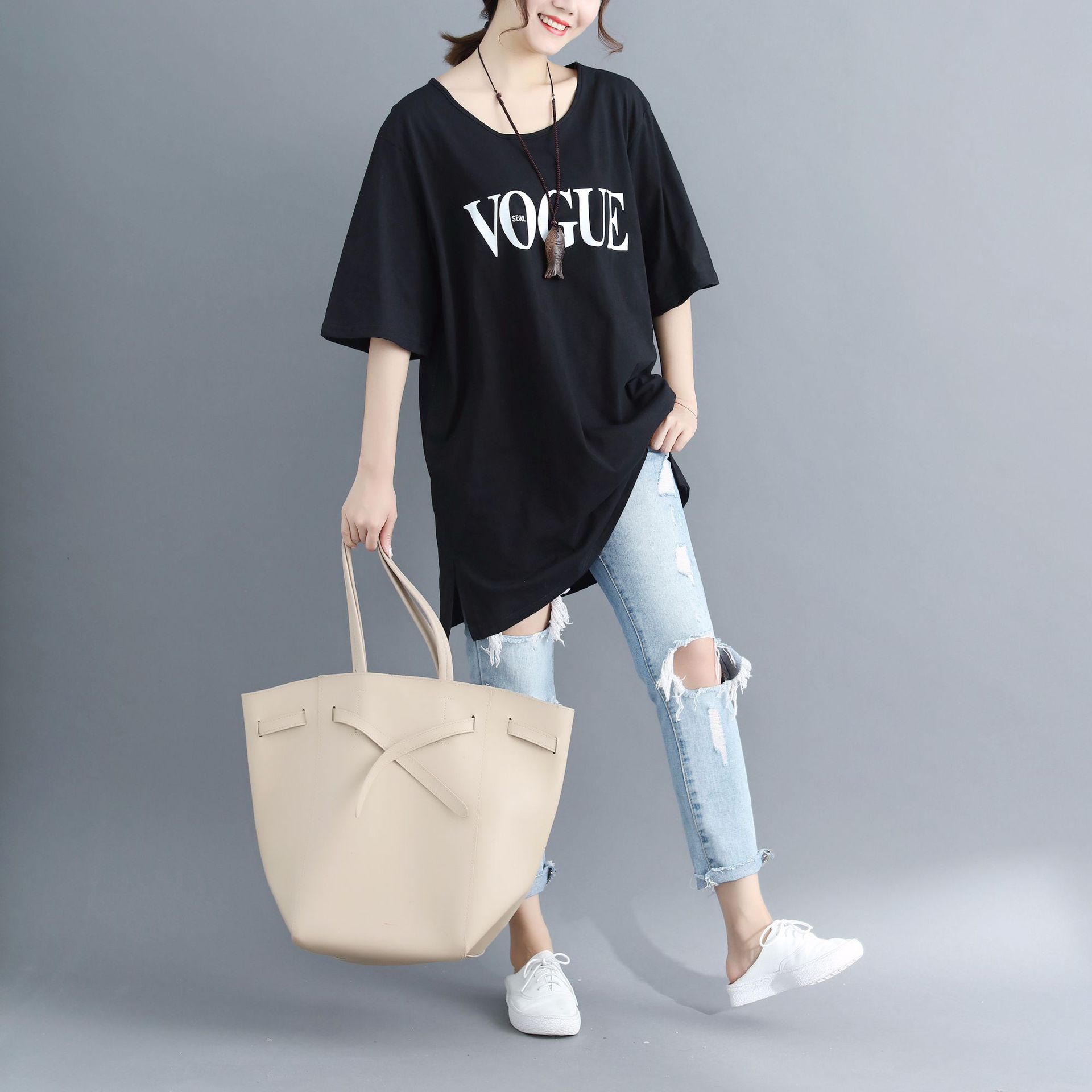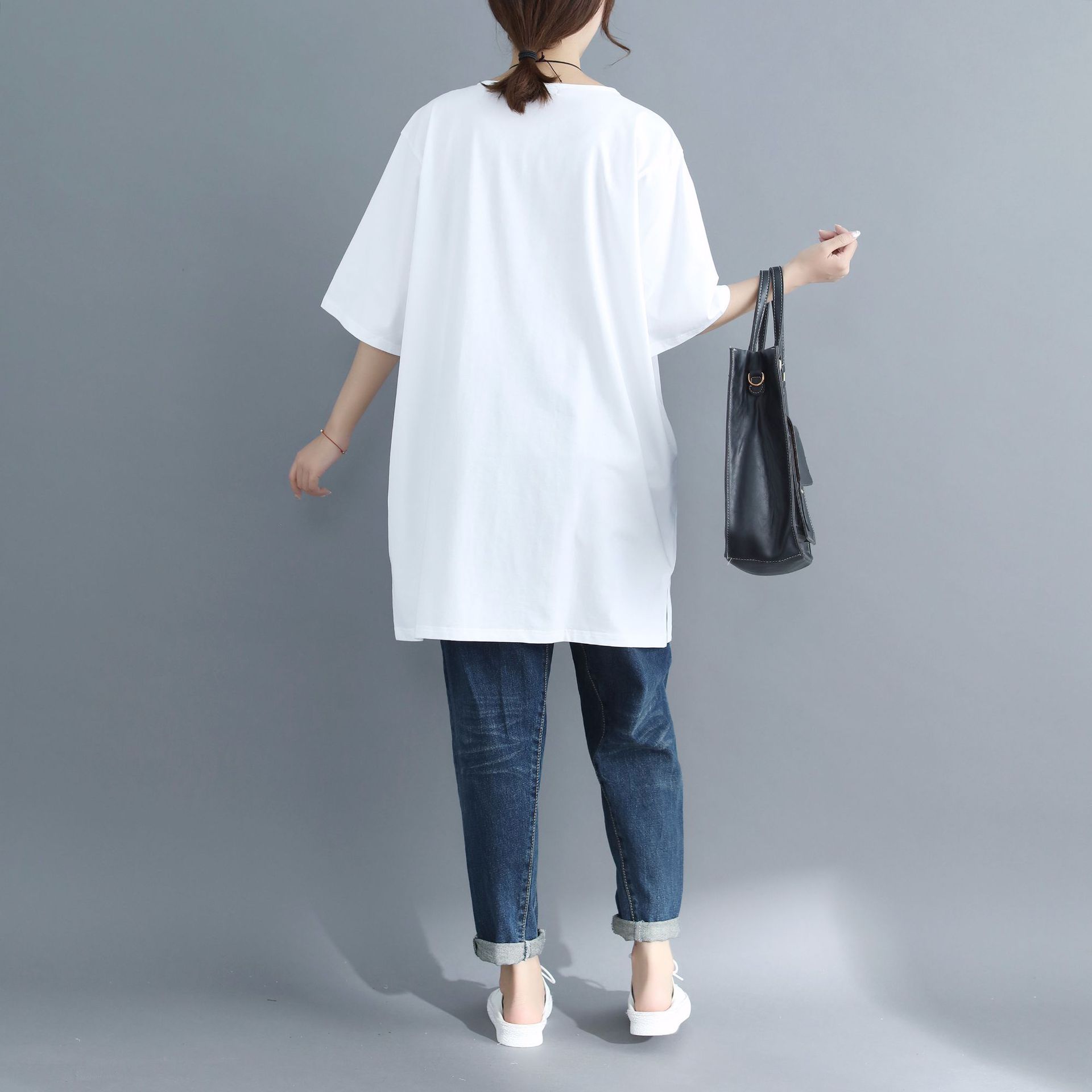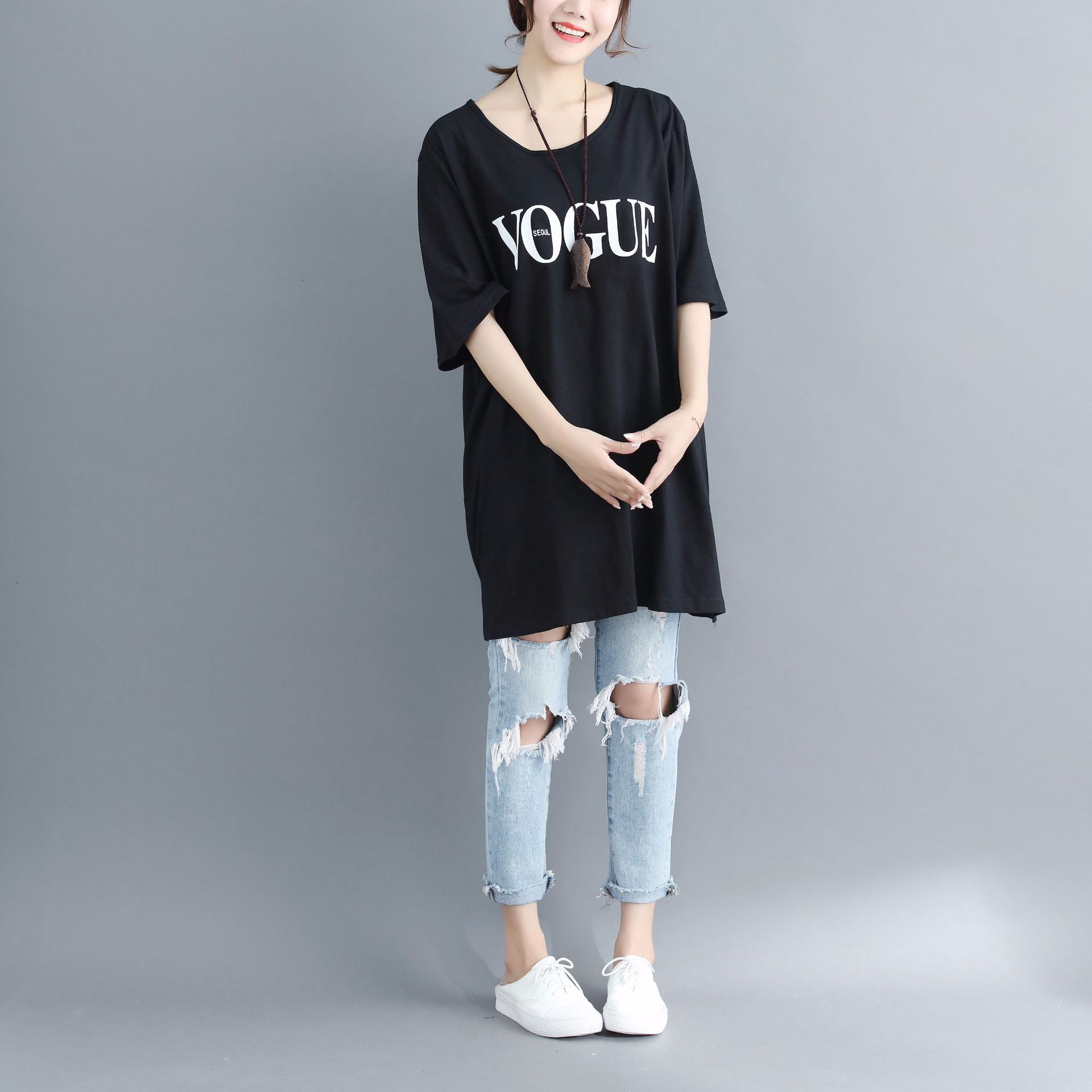 Extra large size t-shirt female 300 catties 200 Korean version 250 loose plus fat plus 240 fat mm medium length fat man sleeves