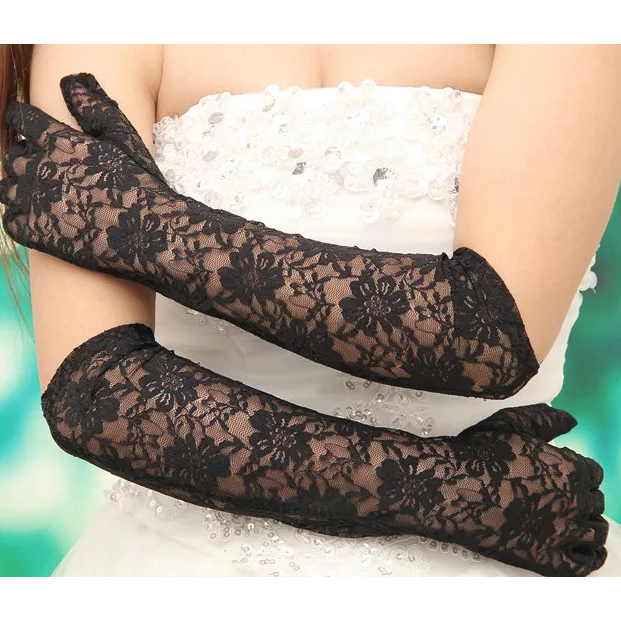 High-end black and white length Korean and Japanese performances sunscreen breathable bride wedding photo studio photography lace acting gloves