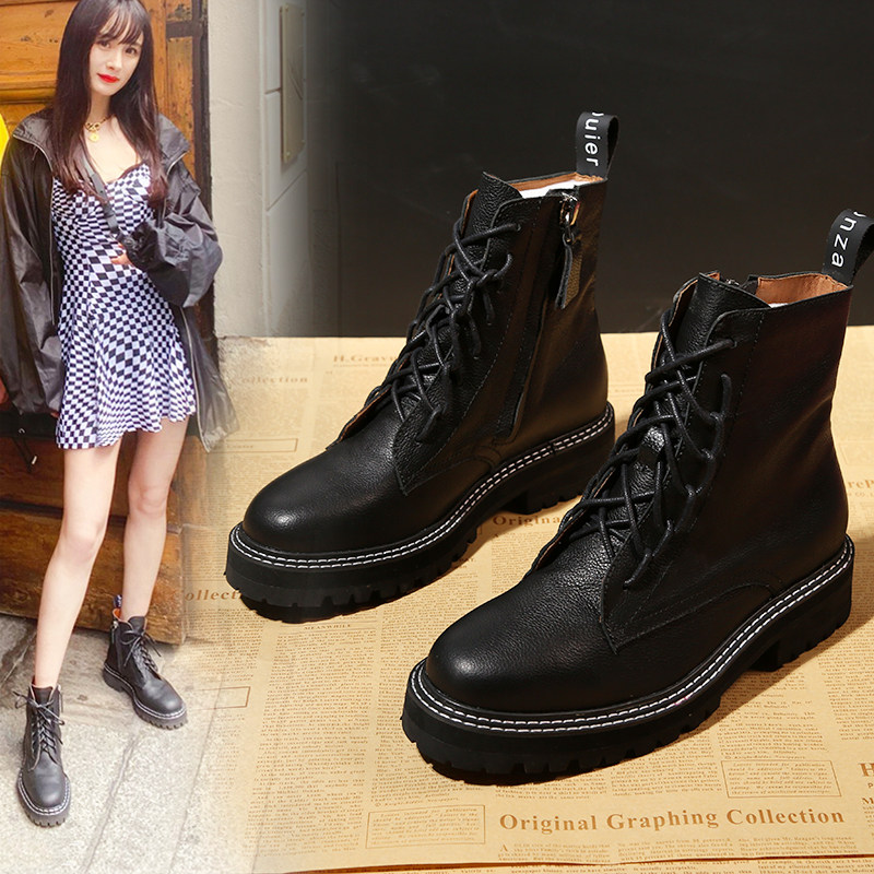 Martin boots 2020 new winter coarse heels Breathable Yingren Wind Locomotive Single Boots Children Short Boots Spring Autumn Large Size Women's Shoes