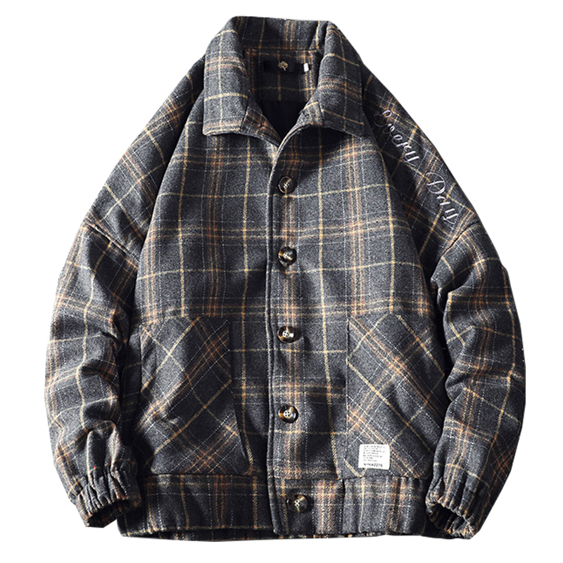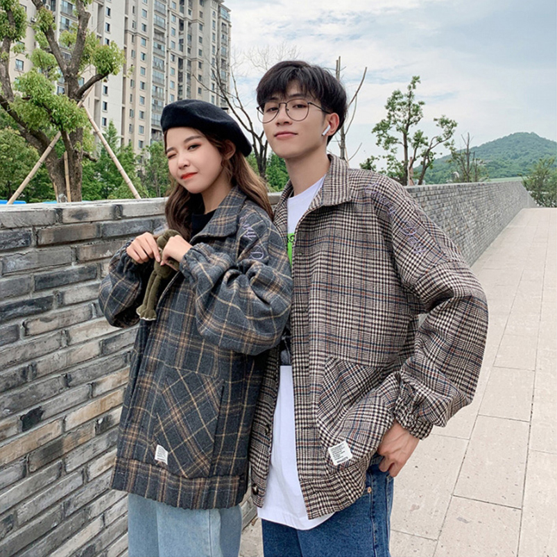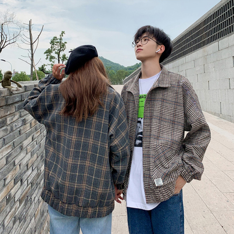 High Street coat men's spring and autumn loose Ruffian handsome net red plaid jacket Korean trend couple tide card ins shirt