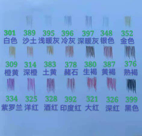 321 large red 325 OCEAN RED 334 VIOLET 378 OCHRE 378 OCHRE 314 DARK ORANGE 397 DEEP GREY 301 WHITE 395 LIGHT WARM ASH 396 COLD ASH 348 SILVER 389 SANDY 35 SANDY 35