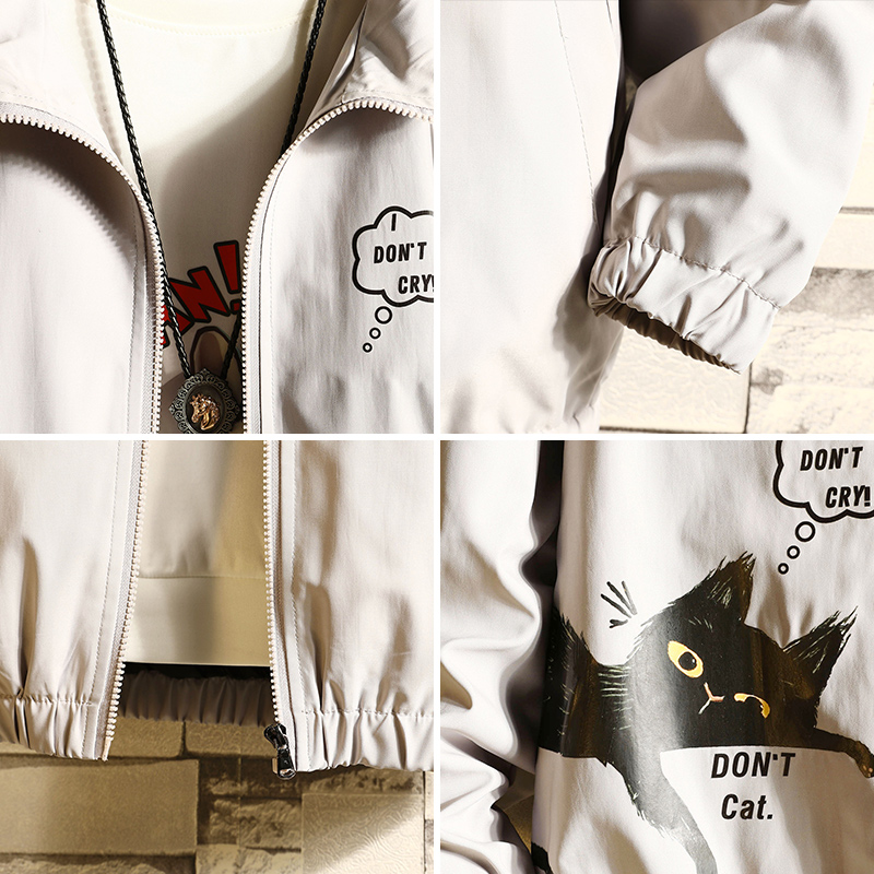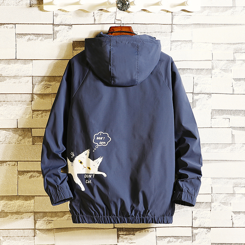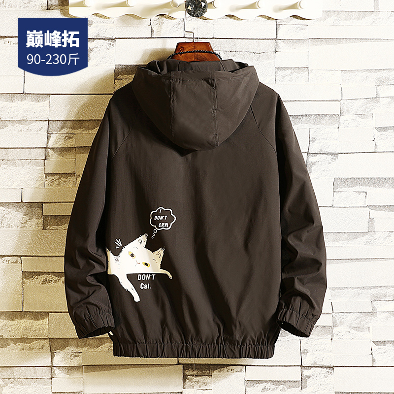 Coat men's spring and autumn Korean trend autumn Japanese large size black jacket print loose fat jacket men's clothing