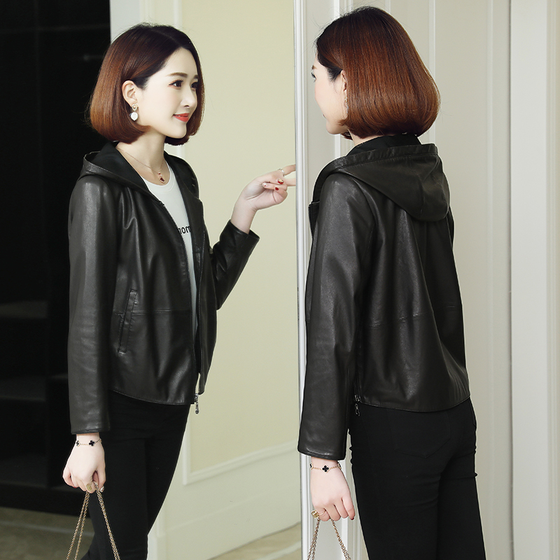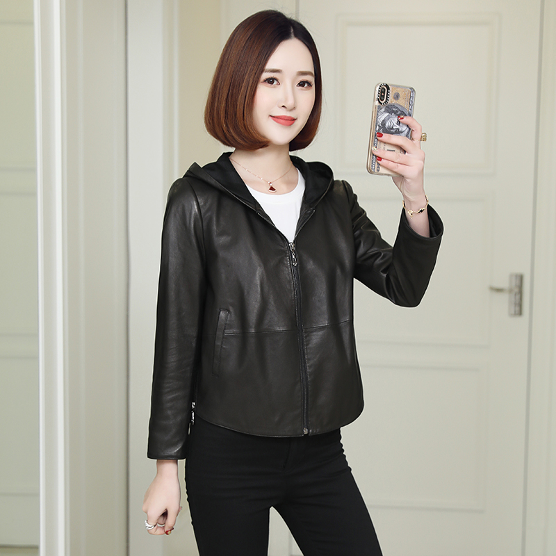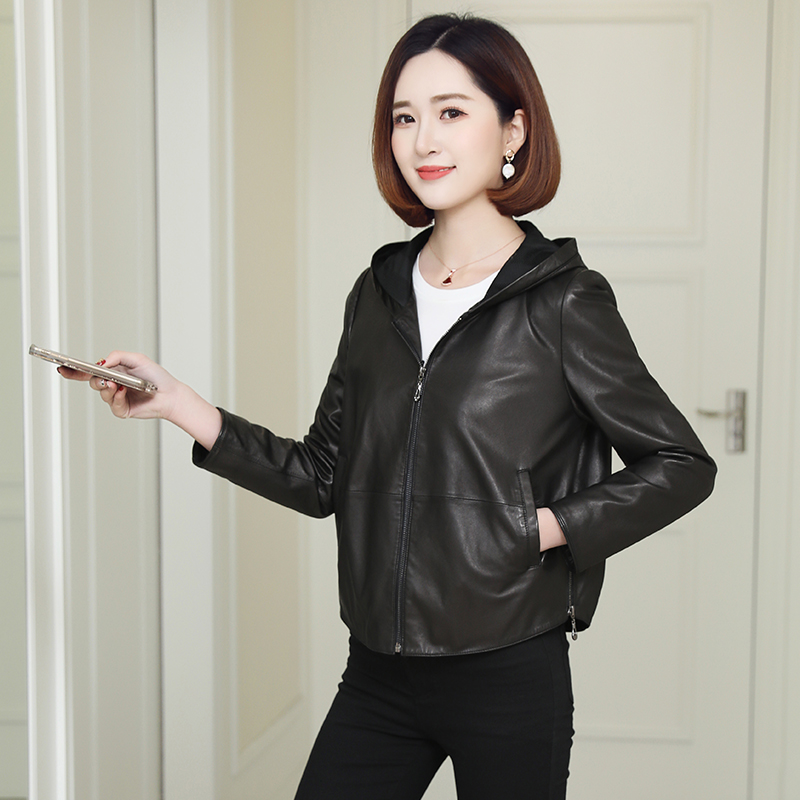 Sheep Leather Leather Jacket Jacket Short 2022 New spring autumn large size Loose Casual Henning Leather Clothing Lady