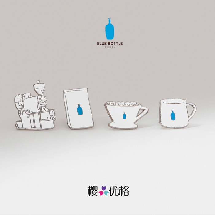 Japanese Blue Bottle Coffee Blue Bottle Coffee Découts Mountain Qualifies Seven Treasure Burning Brooch Pins