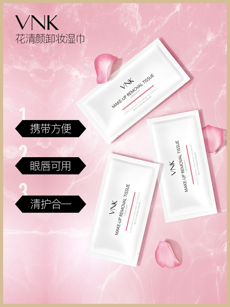 vnk makeup remover wipes female eye makeup lip makeup face deep cleansing mild face towel 1 disposable portable 50 pieces