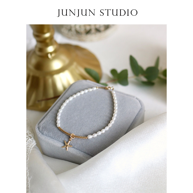 JUNJUN Natural Millet Freshwater Pearl Bracelet Little Star is minimal US 14k Bag Gold Injection Female