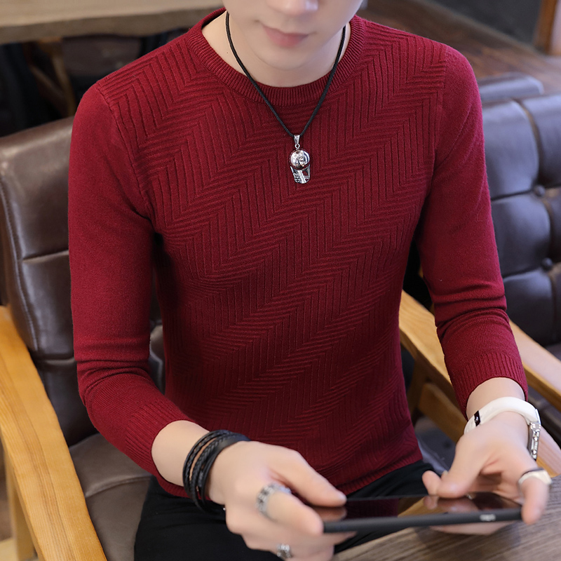 Spring and Autumn Sweater Men's Korean Style Round Neck Slim Thin Long-sleeved Knitwear Autumn Clothes Solid Color Men's Tops Winter