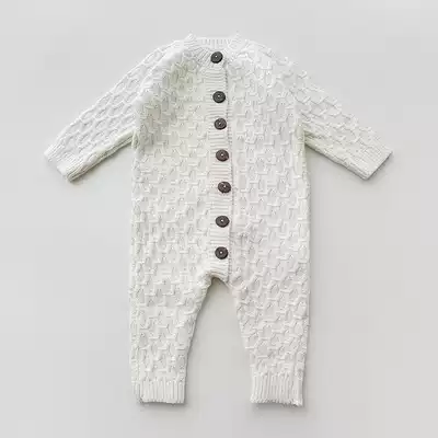 moodbox newborn clothes baby supplies spring and autumn cotton knitted baby jumpsuit ins lapel full moon climbing suit