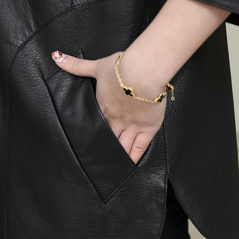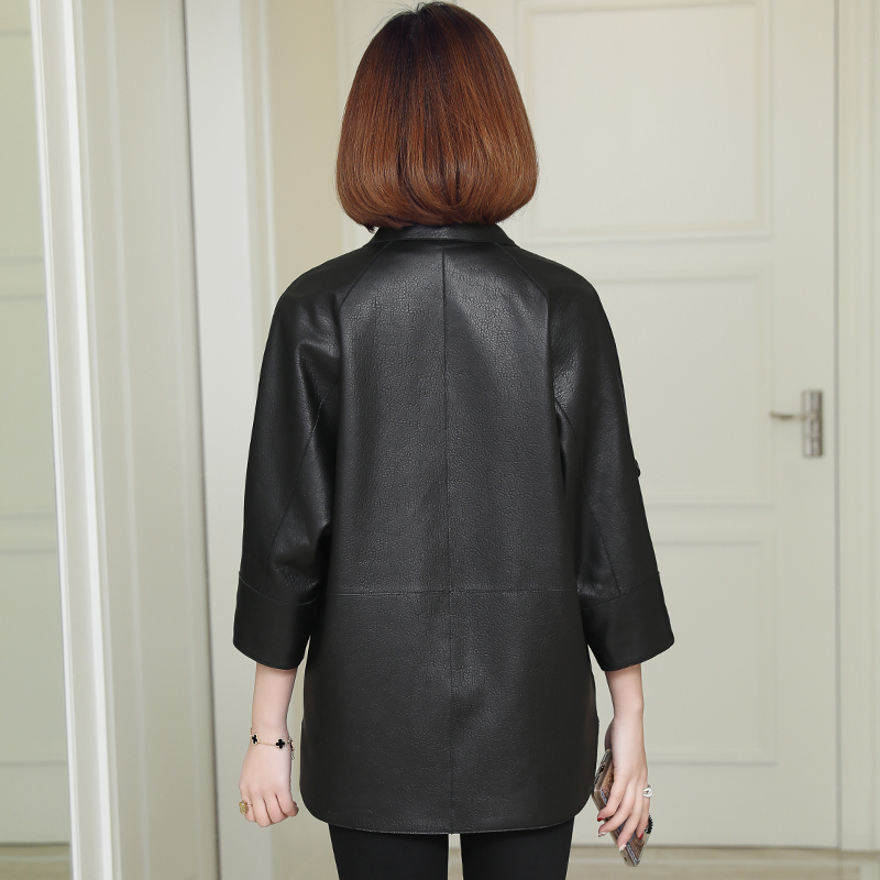 Leather jacket woman medium long version of spring autumn clothing 2022 loose Korean version suit big size Mama sheep leather leather jacket