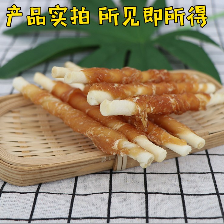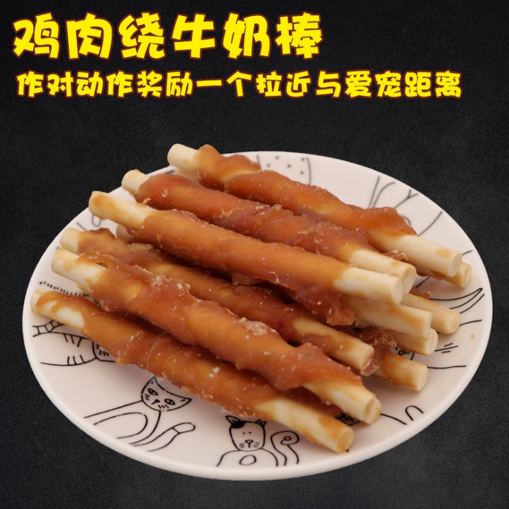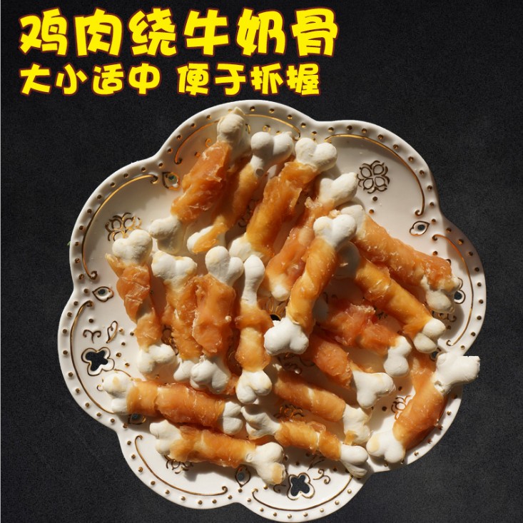 Chicken wrapped around milk bone Chicken wrapped around milk stick 500g Chicken wrapped around cowhide roll 400g Tail single beef wrapped around cowhide roll (200g) Tail single duck meat wrapped around cowhide roll (400g)