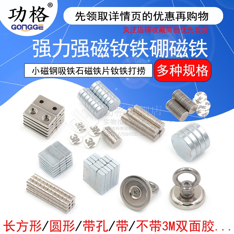 Magnetic strong magnet small suction iron strong neodymium magnet circular rectangular band hole high strength salvage magnet
