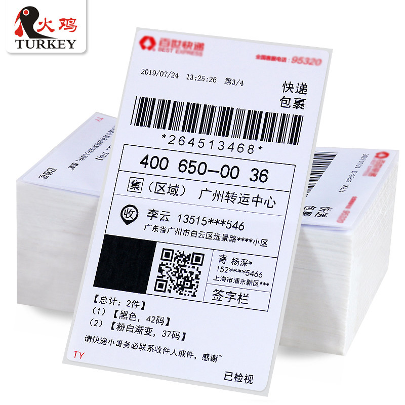 Turkey express A single printing paper 76*130 Yuantong Zhongtong Shen Tongyun Daji Rabbit blank universal new version of portable Rookie A single electronic surface printing paper thermal paper label paper