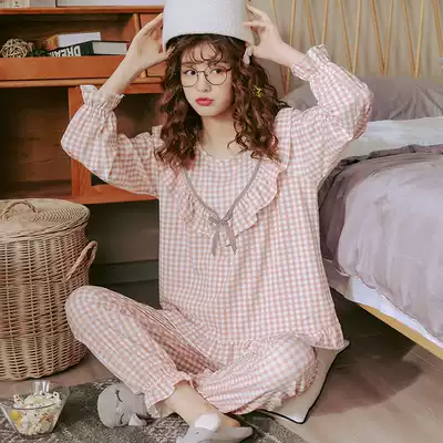 Pajamas women's spring and autumn cotton long-sleeved 2021 new autumn women's fat mm plus size 200 kg loose suit tide