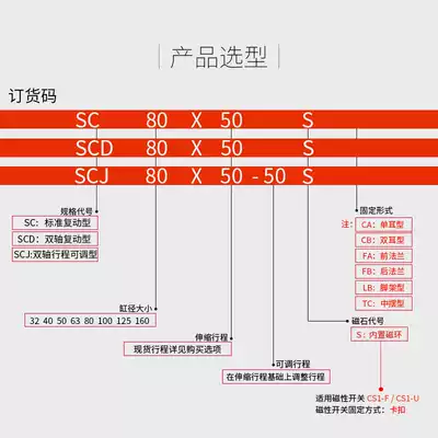 Small pneumatic SC40X50X75X100X150X200X300X500-S with magnetic standard cylinder
