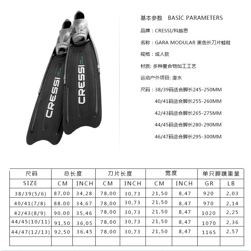 Italian Cressi Gara MODULAR long fins free diving interchangeable blade