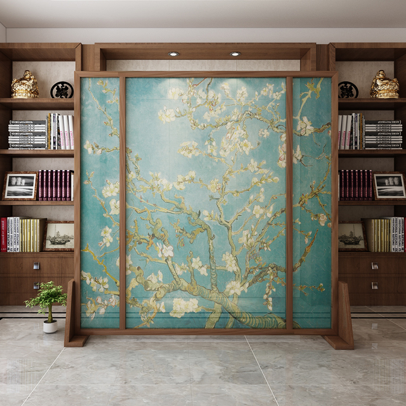 Solid wood mobile modern minimalist Mediterranean light and luxurious screen partition seat screen Xuanguan Living room Bedroom shelter for home