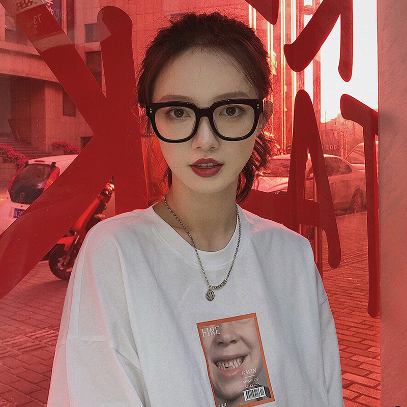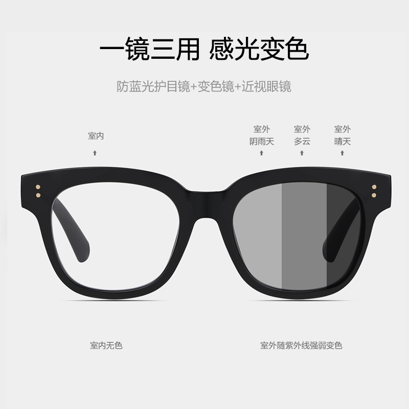 GM anti-Blue anti-radiation myopia glasses female black frame plain eyes male discoloration tide face small matching degree
