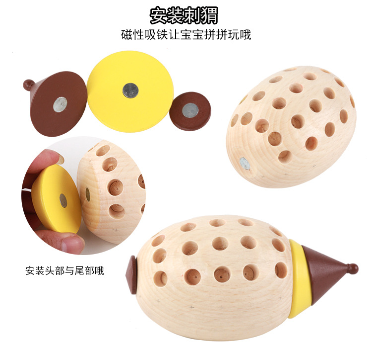 Children's Monteurism Early teaching collab Bricks Magnetic Colorful hedgehog model 2-3-4-year-old baby puzzle power toy