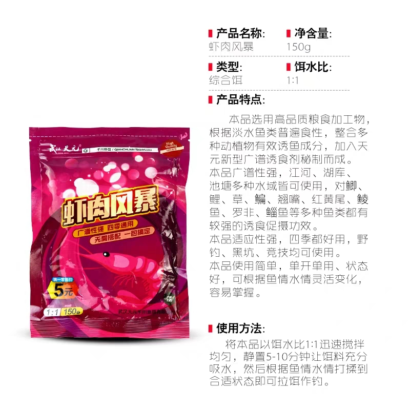 Wuhan Tianyuan shrimp storm 150g Crucian carp grass bream through killing bait Four seasons wild fishing black pit fishing bait comprehensive
