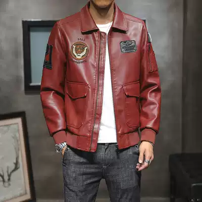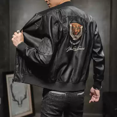 Leather leather clothing men embroidery trend handsome leather jacket men's locomotive clothing sheep jacket Young and winter autumn and winter
