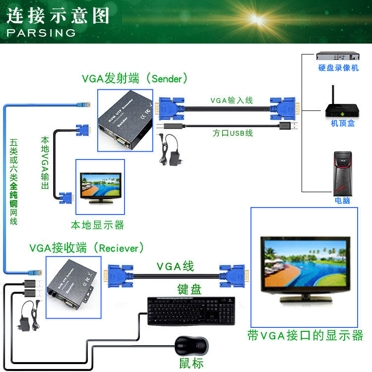 VGA Film USB Extender Pair Price VGA Film USB Extender 2 collections a set of 50 m USB keys Mouse extender pair of price VGA film audio prolongator pair