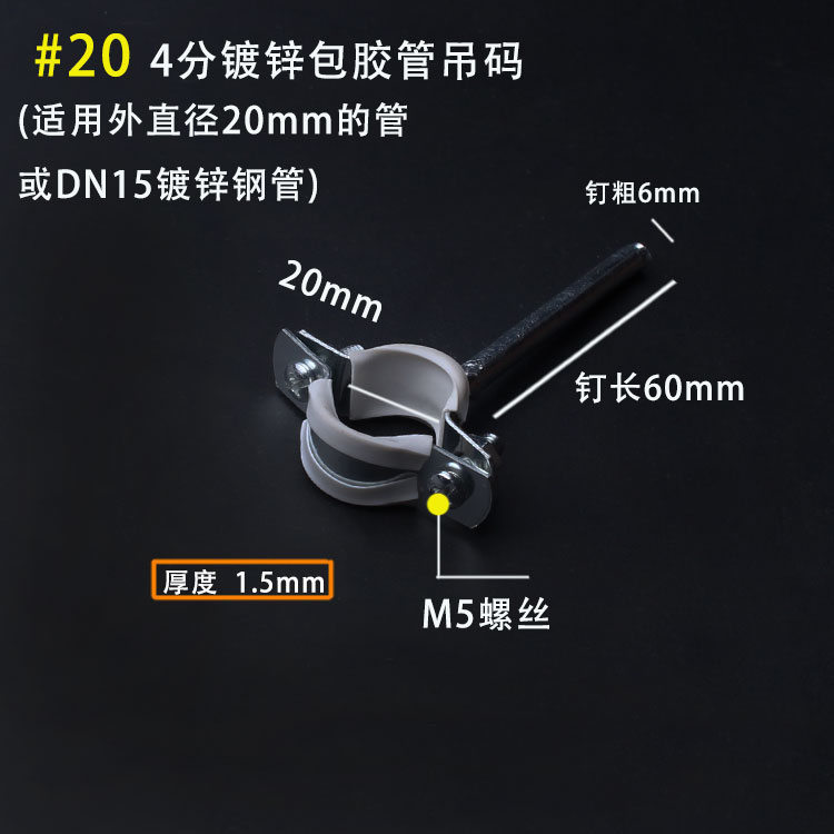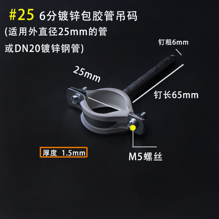 20 galvanized rubber-coated pipe hanging code (30 pieces) 25 galvanized rubber-coated pipe hanging code (30 pieces) 32 galvanized rubber-coated pipe hanging code (30 pieces) 40 galvanized rubber-coated pipe hanging code (30 pieces)