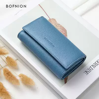 Keychain three-fold wallet women's short leather buckle mini storage bag small key bag multi-function key bag