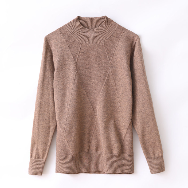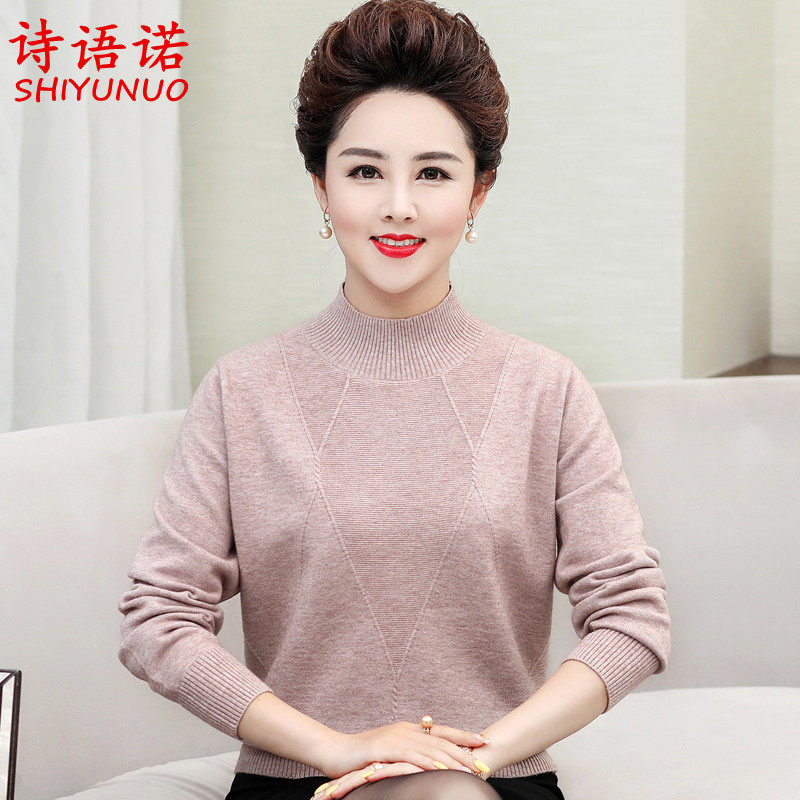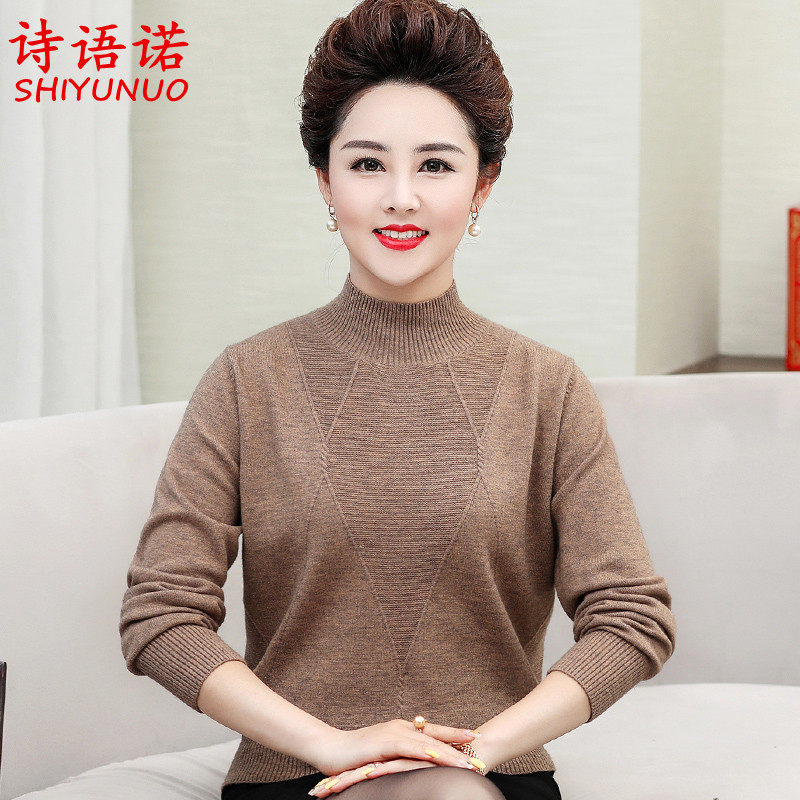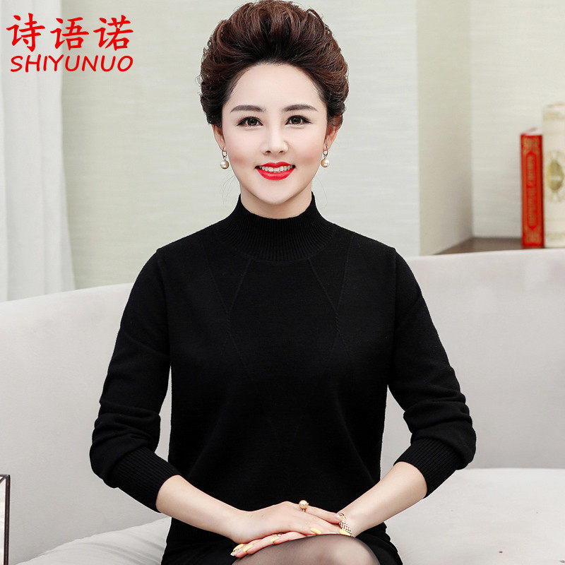 Temperament mother autumn semi-turtleneck base shirt top Middle-aged women's long-sleeved sweater solid color wild sweater