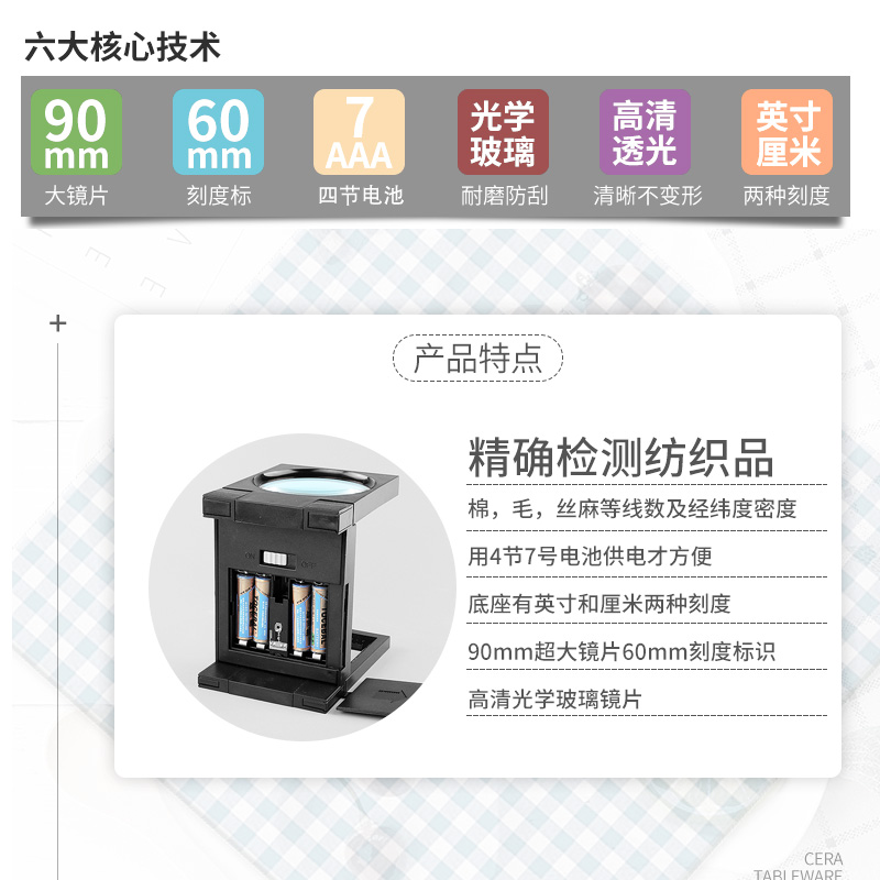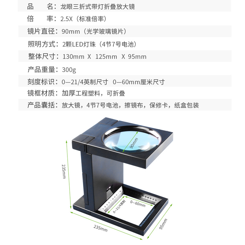 Longan light cloth high-definition optical magnifier with light scale measurement reading triple folding magnifier textile printing dot maintenance inspection identification antique pigeon eye tool magnifier 10