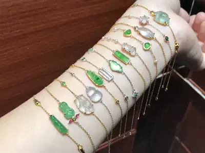 Gao Bing Emperor green emerald hand chain Egg noodles jade hand chain Violet gourd chain 18K inlaid Yang Green bracelet