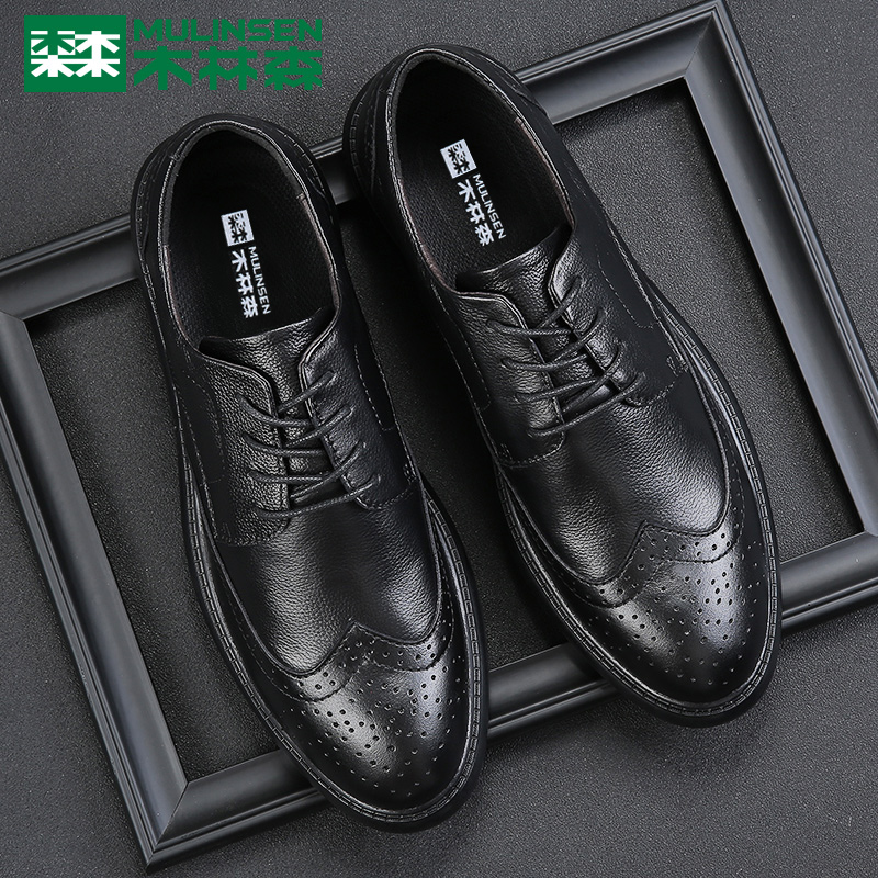 Wood Linson Brock Leather Shoes Men's Spring Fall New Inglén Leisure Business Positive Dress Black Genuine Leather Shoes Man