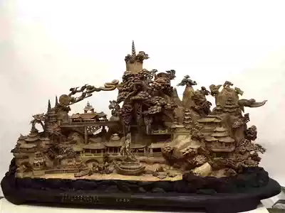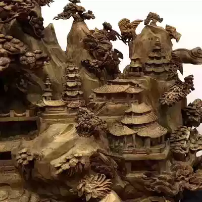 Large agarwood landscape Jiangnan water town flower and bird living room entrance hand-carved floor ornaments root carving wood carving ornaments