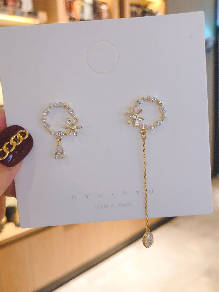Earrings Korean temperament super fairy net red long asymmetrical earrings 2021 new trendy female Mori circle earrings