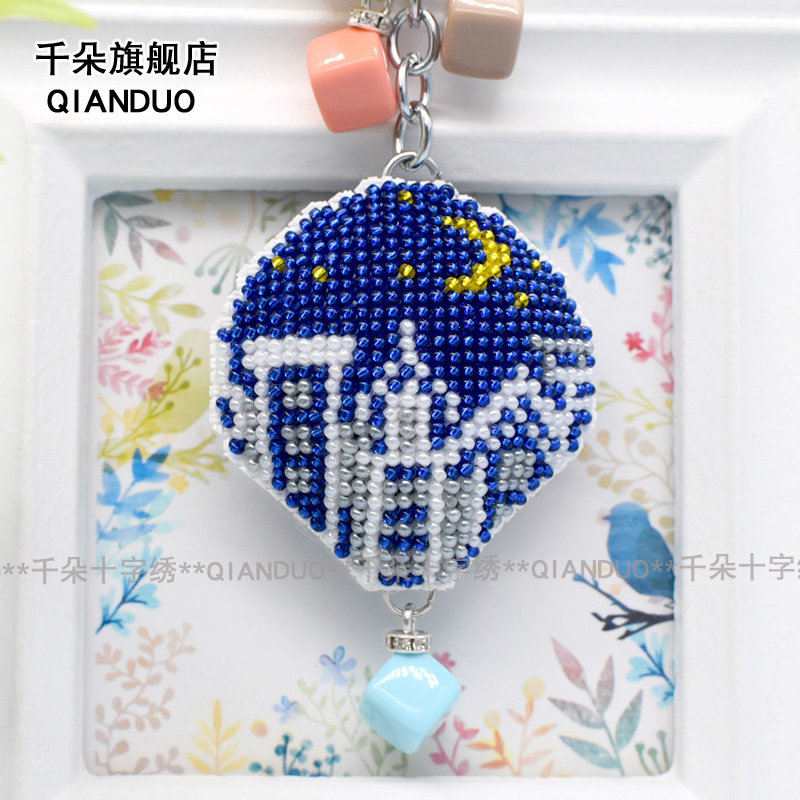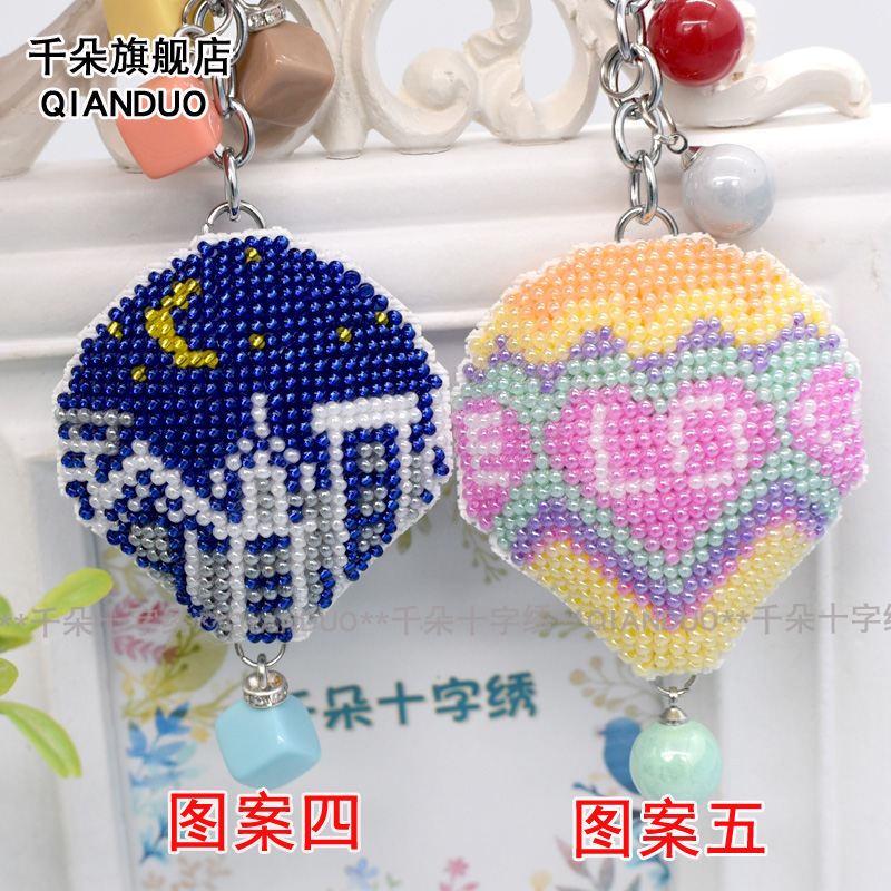Thousands of new products Thousands of handmade materials covered with beads cross-stitch keychain Romantic hot air balloon double-sided embroidery pendant