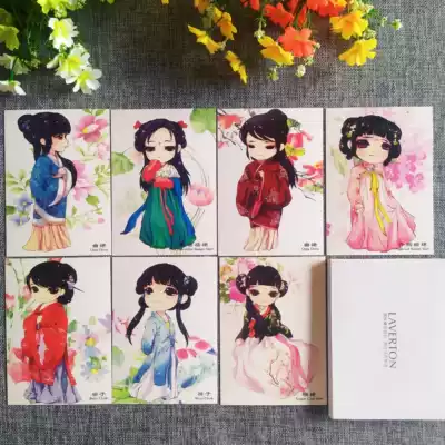 Q version of the cute Hanfu cartoon cartoon postcard 16 sets of Chinese classical style hand-painted illustration postcards