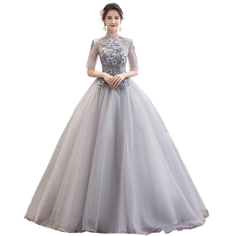 Solo acting out of the women's fluffy dress Long version vocal student art gown host's annual meeting evening gown fluffy dress
