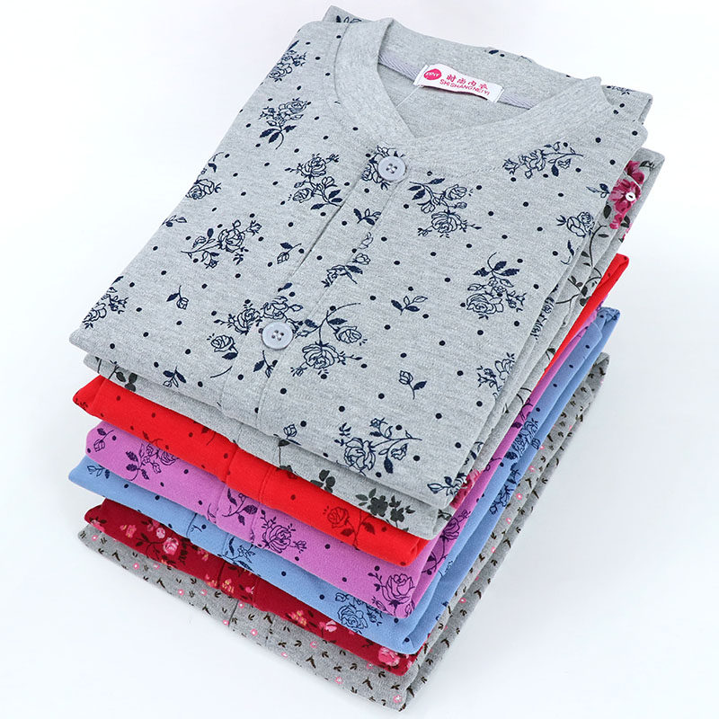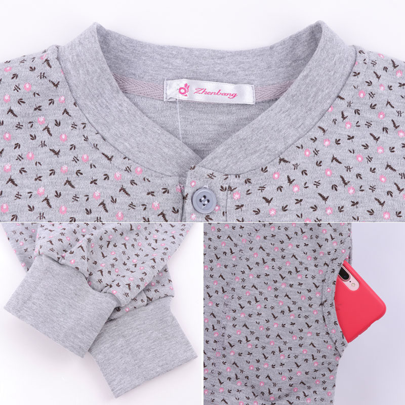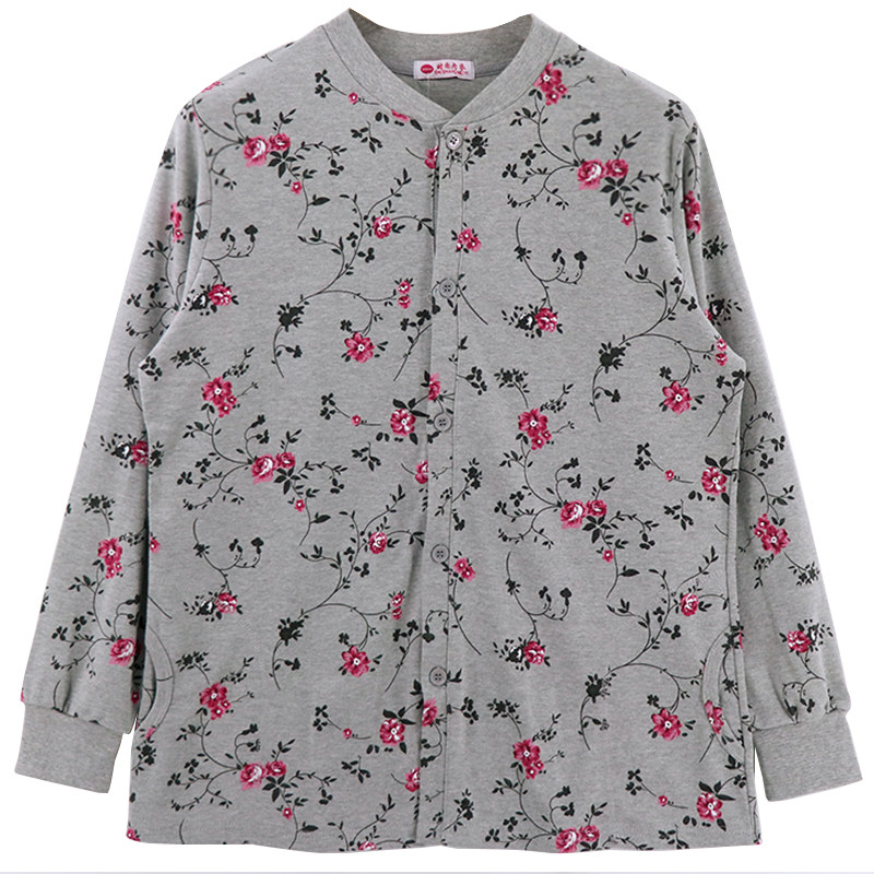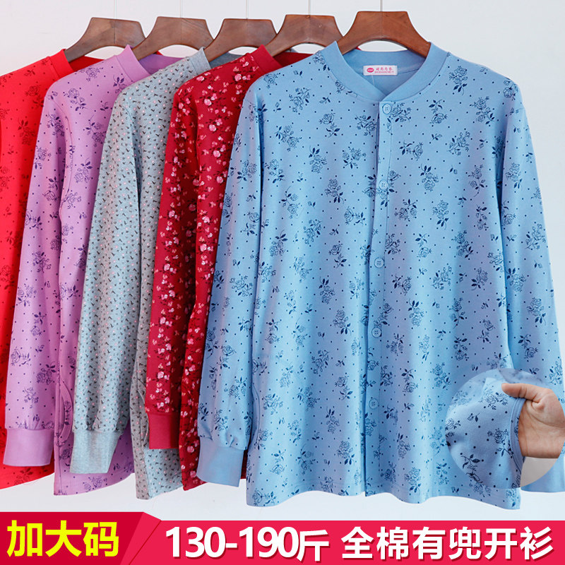 Middle-aged and elderly plus fat plus size ladies cardigan pure cotton double-breasted autumn clothes with pocket elderly knitted one-piece home clothes top