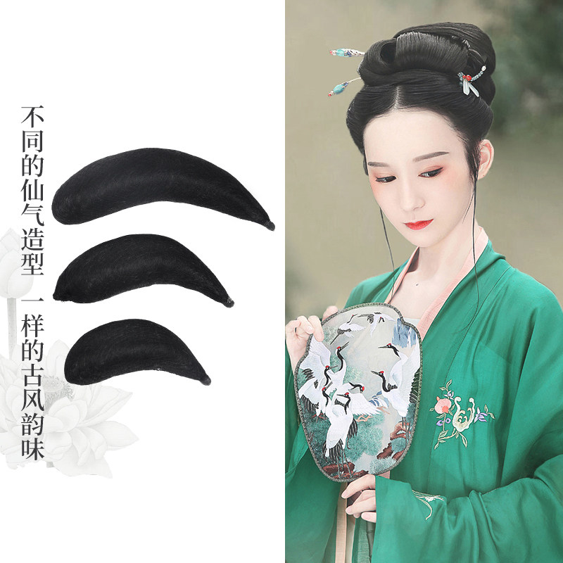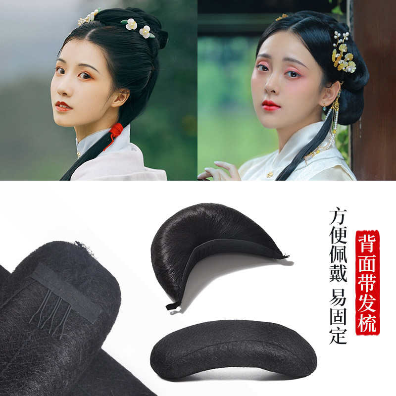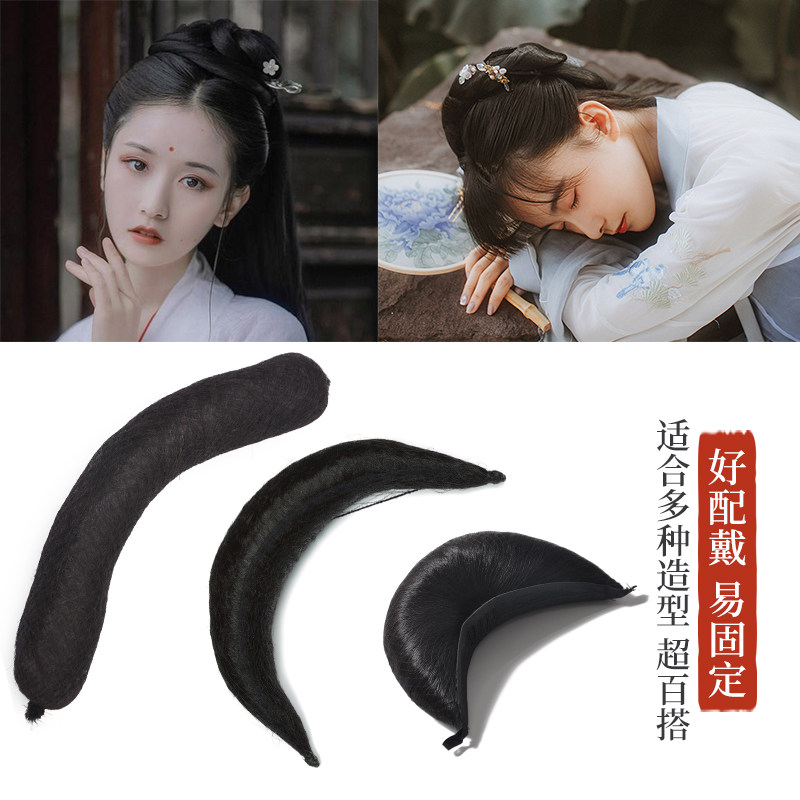 Ancient costume wig horn pad hair bag U-shaped horn bag Hanfu COS bendable pure hair round horn stick hammer bun
