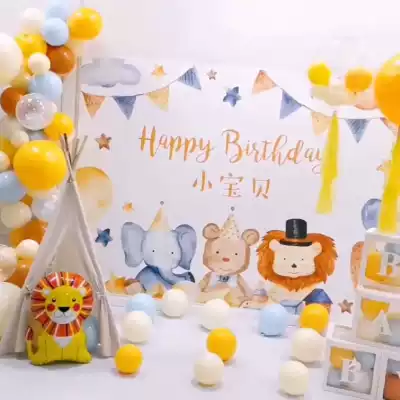 Forest animal baby full moon birthday party decoration background cloth Party poster wall dessert table custom decoration