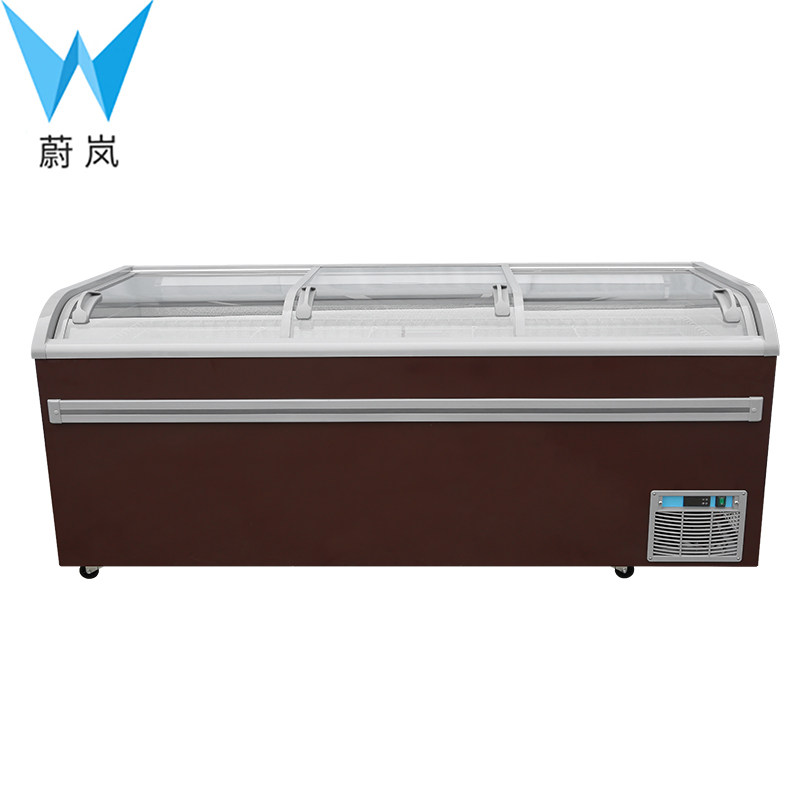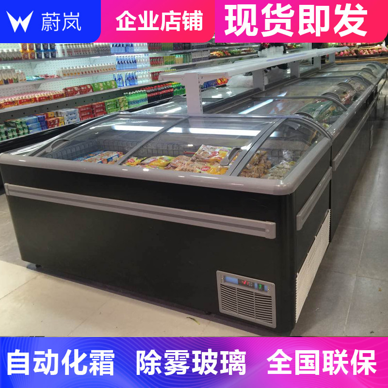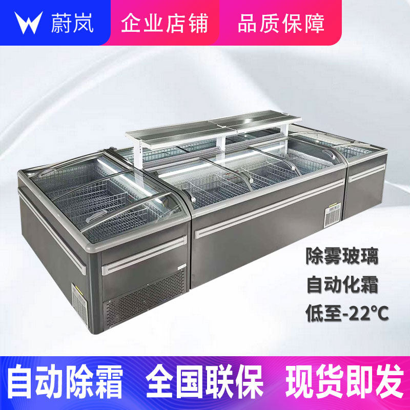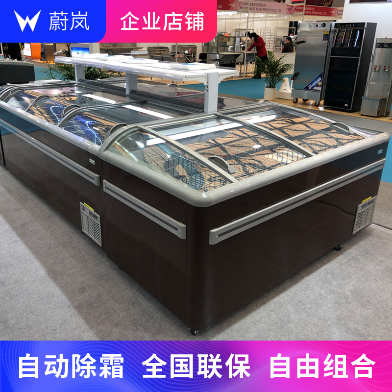 Supermarket Combo Island Cabinets Commercial Horizontal Frozen Display Case Glass Transparent Fridge Large Capacity Low Temperature Frozen Freezer