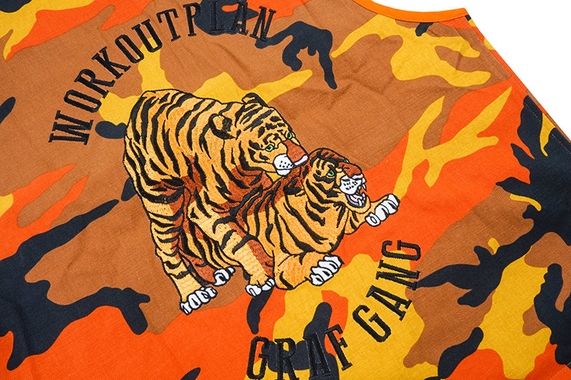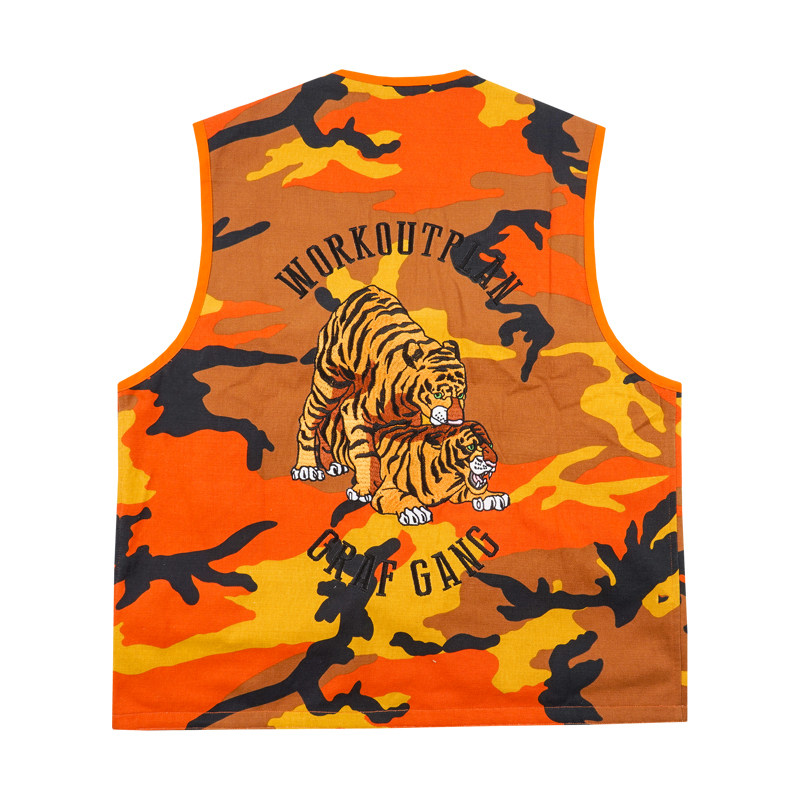 GRAF ORIGINAL BRAND WORK OUT PLAN EMBROIDERED TIGER PATTERN ORANGE CAMOUFLAGE MULTI-pocket CANVAS TACTICAL VEST