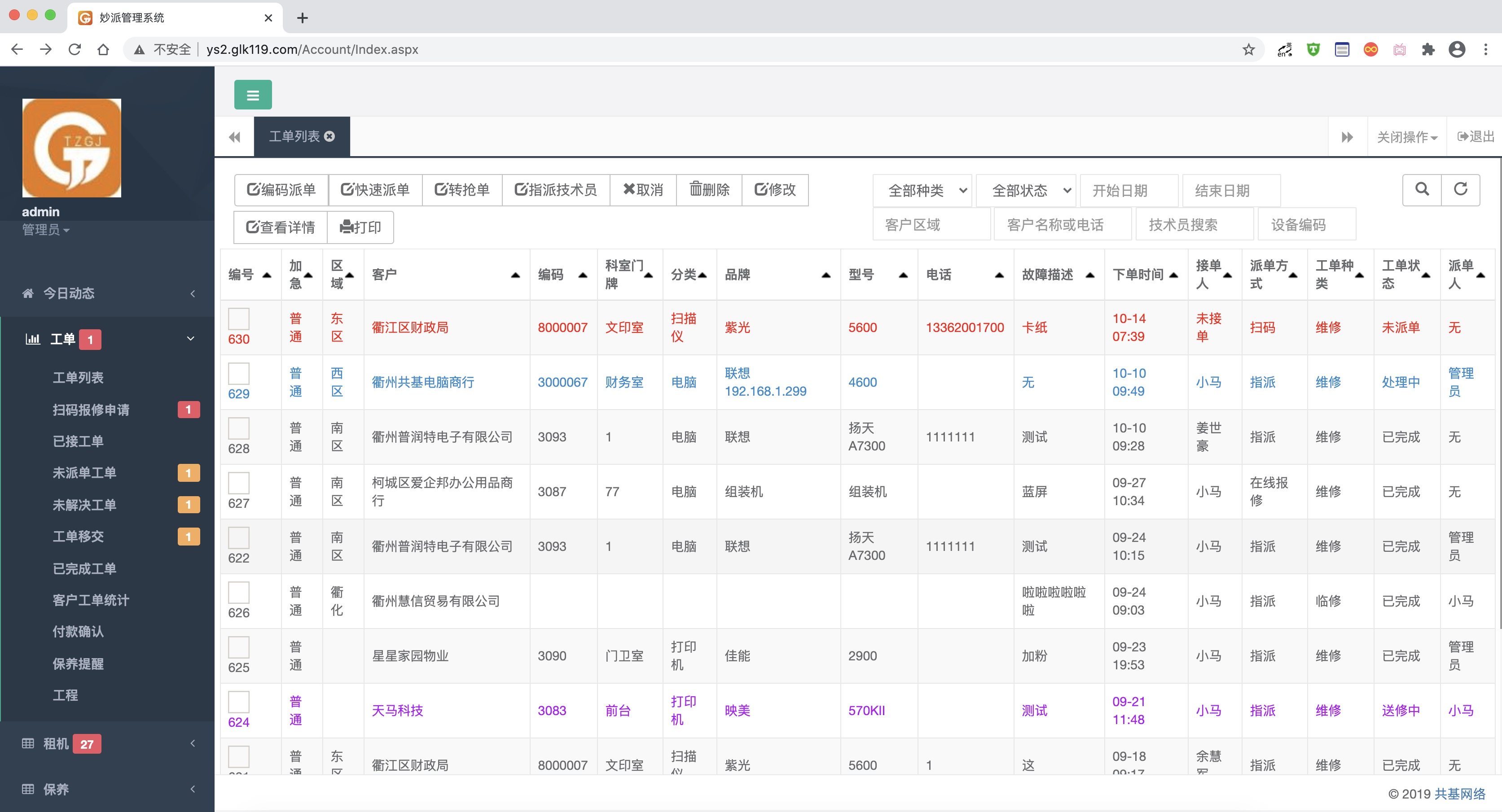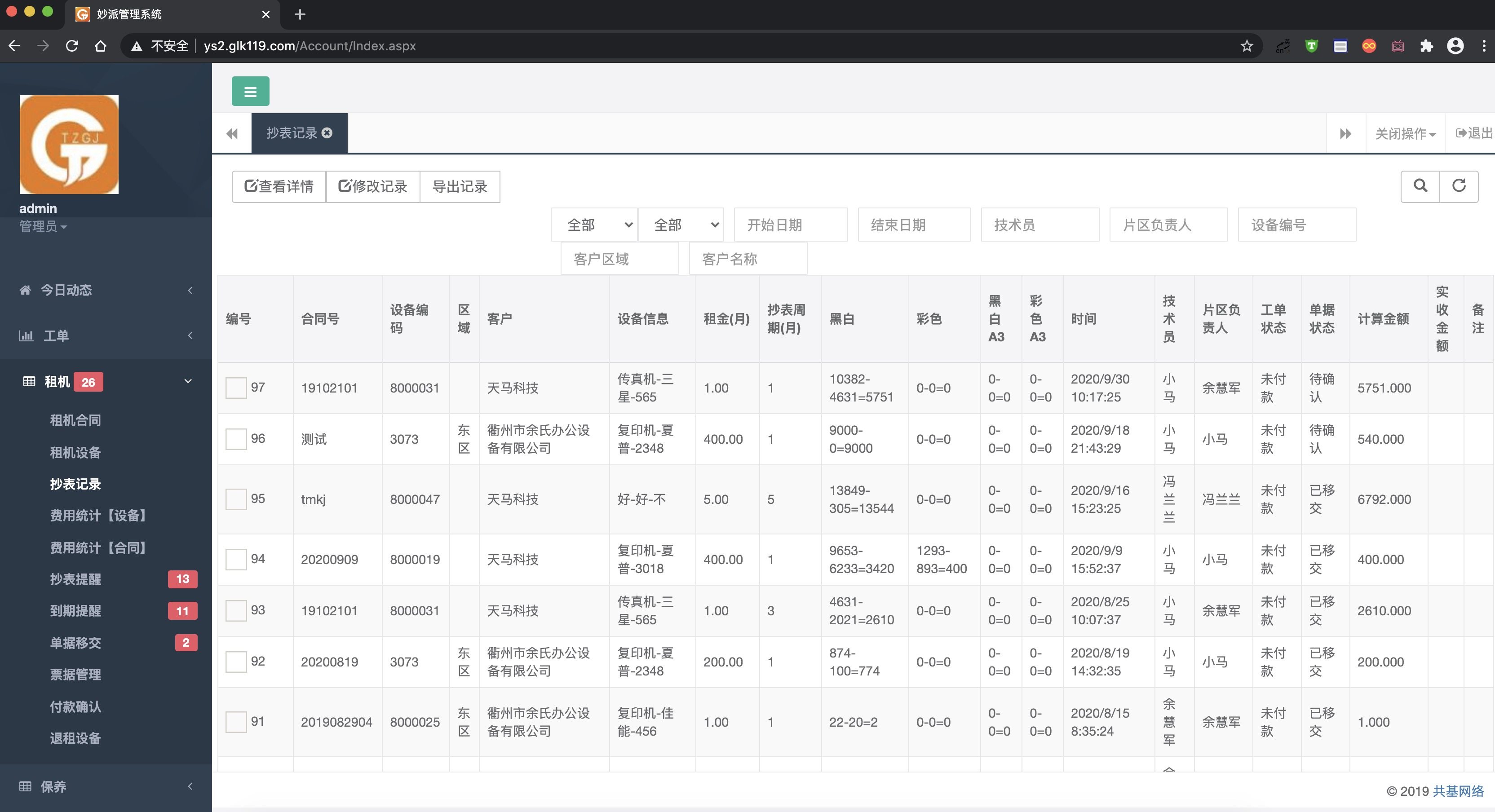 Copier rental meter reading computer maintenance dispatch scan code repair service technician management operation and maintenance software system